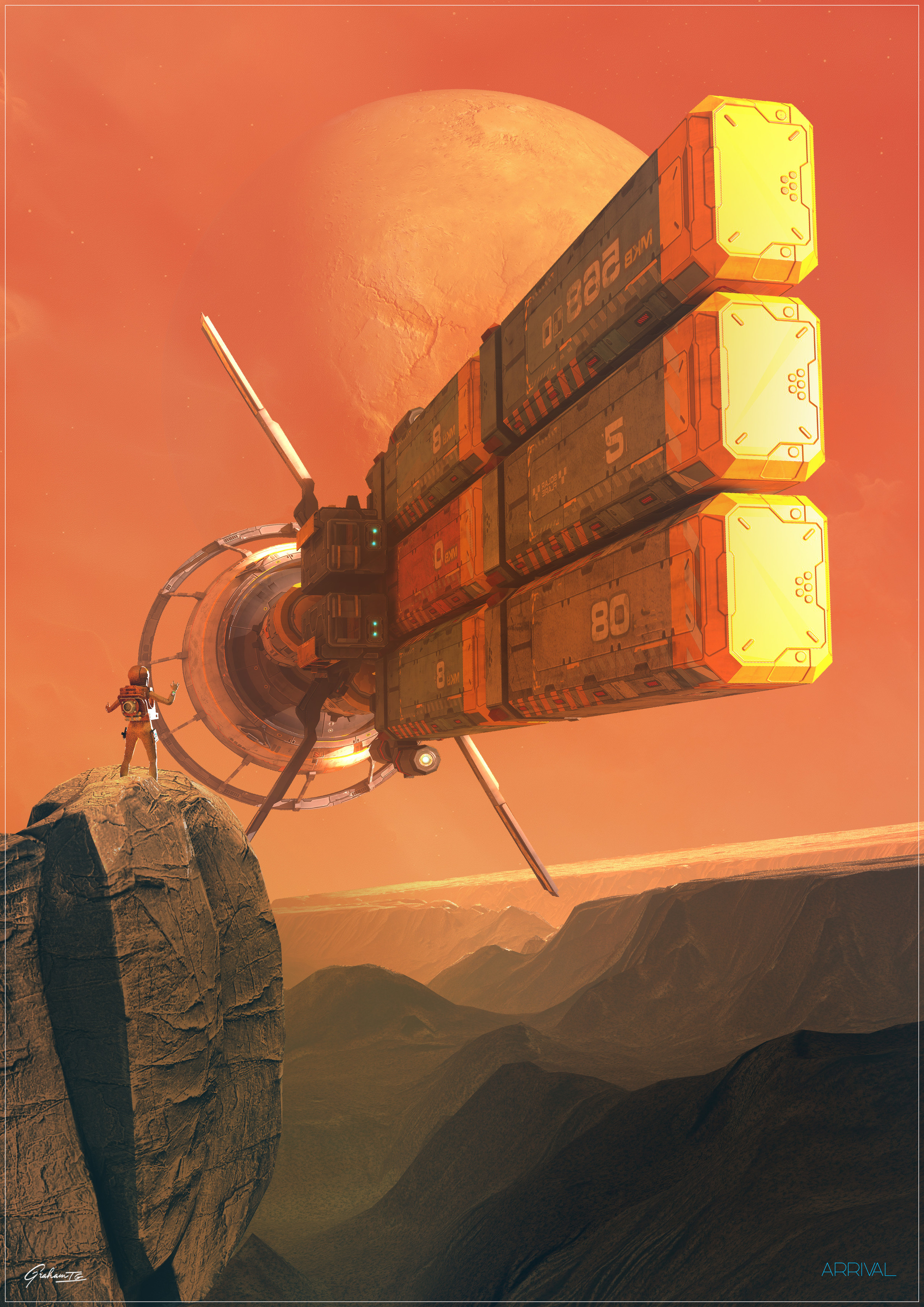 "Arrival" Lightwave3d render, with a tip of the hat to scifi artists who continue to inspire me every day.