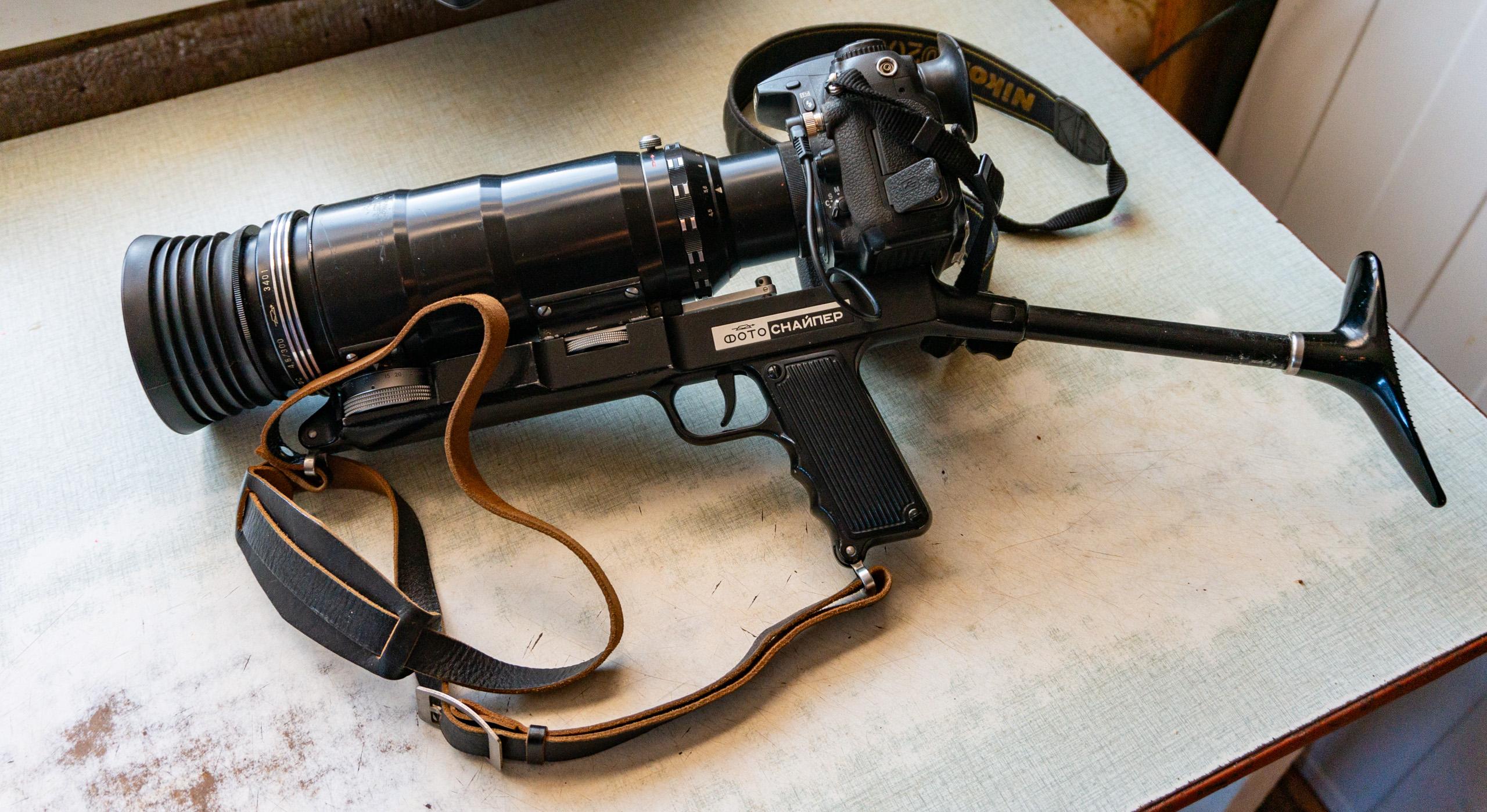 Давно хотел себе фоторужье. Несколько лет назад на барахолке купил себе мечту. Вместо Зенита был установлен Nikon D200. Именно он идеально подходил по габаритам. Спуск затвора сделал от штатного курка фоторужья. Получилась приличная конструкция для фотоохоты.