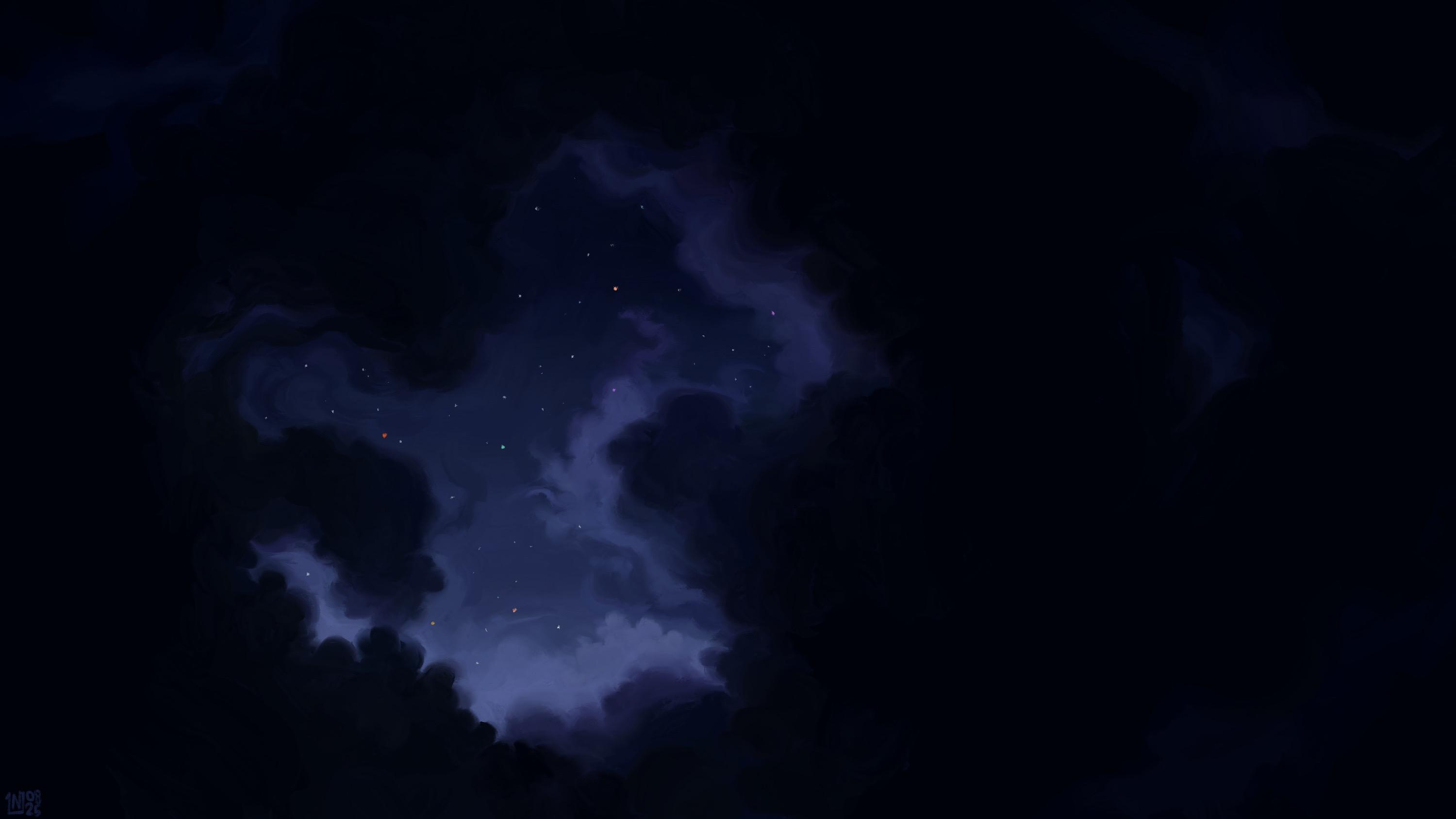 We report: the stars show up amidst the clouds like precious stones in a velvet jewellery case, a cracked geode. They twinkle and shift in colour with the wind, and we cannot see the constellations they belong to, but they seem important and special enough on their own.